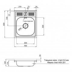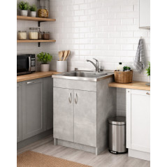 Готовий кухонний модуль Samix. Включає тумбу 50 см (колір Індастріал) та накладну мийку з нержавіючої сталі (0.6 мм, без крила).